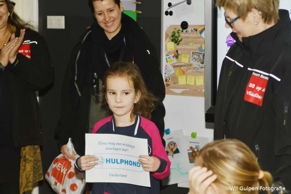 Haar grote broer zit in een rolstoel wegens een spierziekte. Ze wil haar broer voor de toekomst graag helpen, daarom heeft ze gevraagd of dat ze een middagje mee zou kunnen lopen met Hulphond Nederland om te kijken hoe dit allemaal in zijn werk gaat. Uiteraard heeft Buurt Bestuurt op de Vliedberg alles uit de kast gehaald om deze wens in vervulling te laten gaan. - ELINE - gefeliciteerd, wij zijn TROTS op jou. Je mag samen met je moeder een middagje meelopen!