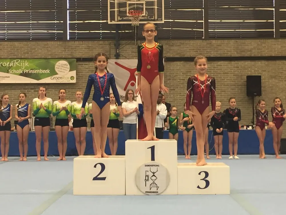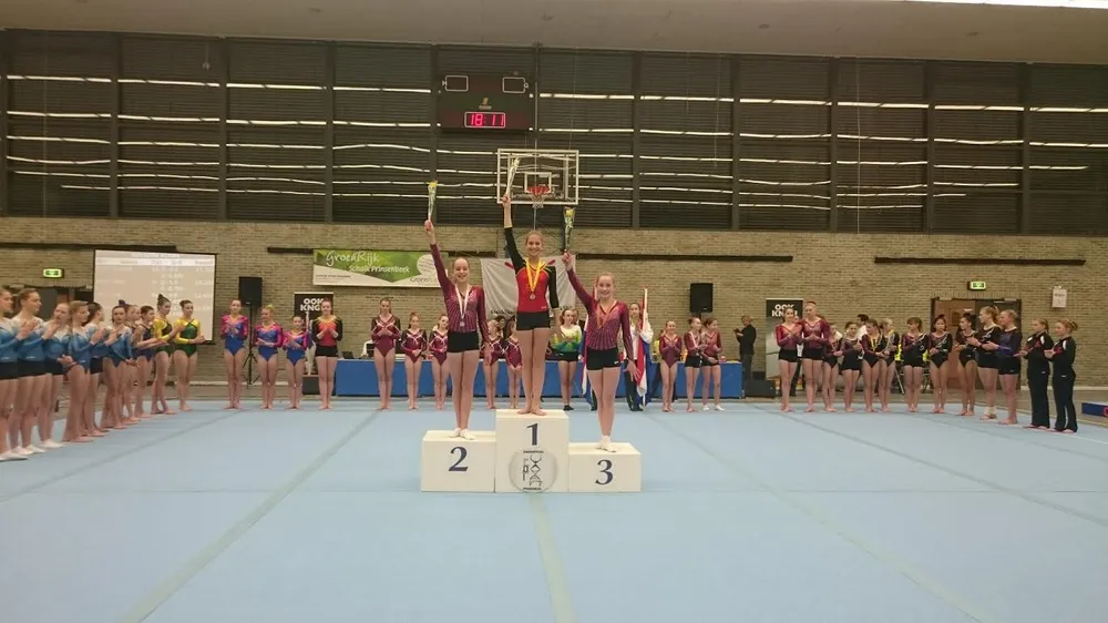 Eerstejaars pupil Addelieke de Jong (9- en 10- jarigen) turnde deze wedstrijd erg sterk en veroverde het goud in de meerkamp. Zij turnde zich naar een eerste plaats op balk en vloer en won overtuigend de meerkamp pupil 1 N3 met een puntentotaal van 52.175.