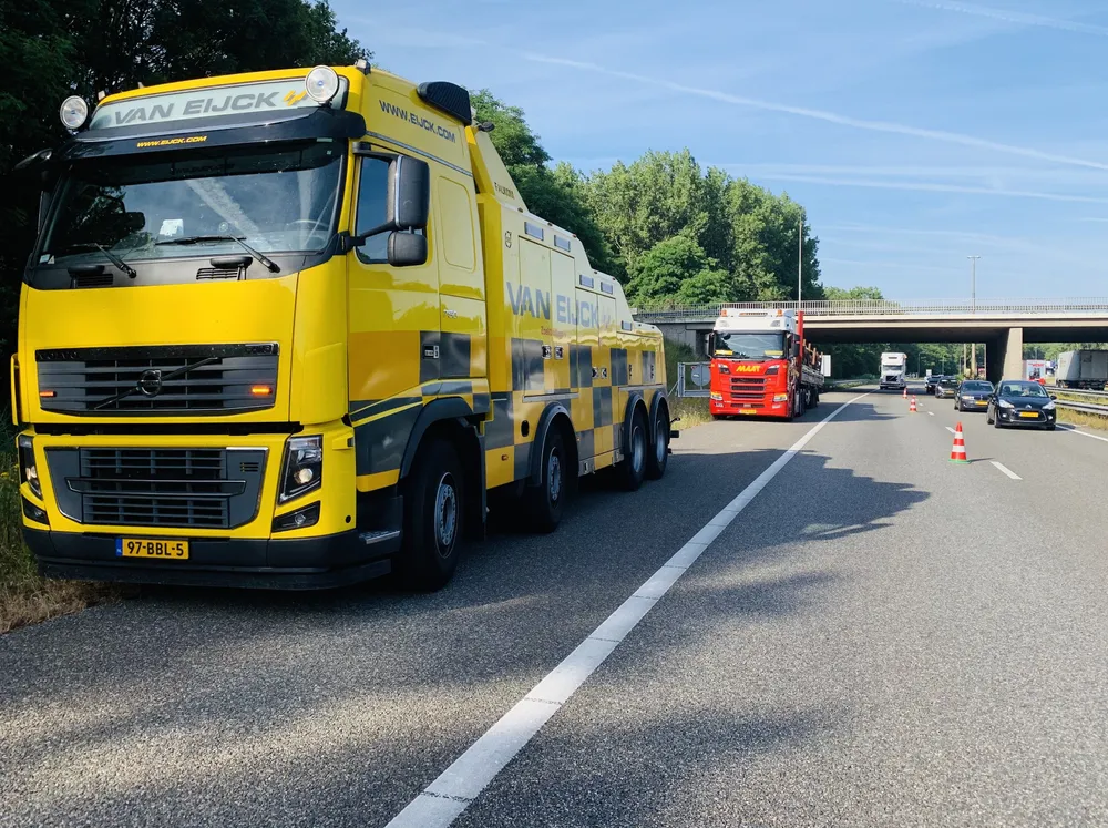 Dinsdagmorgen rond 8.00 uur is een vrachtwagen met oplegger gestrand op de A59 ter hoogte van Vlijmen.
