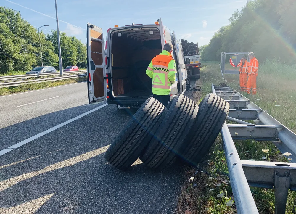 De oplegger van de vrachtwagen heeft drie lekkenbanden opgelopen. Omdat de vrachtwagen niet weggesleept kon worden moest de ter plaatsen gemaakt worden. Dit zorgde voor kilometerslange file doordat een rijbaan was afgesloten voor het verkeer.