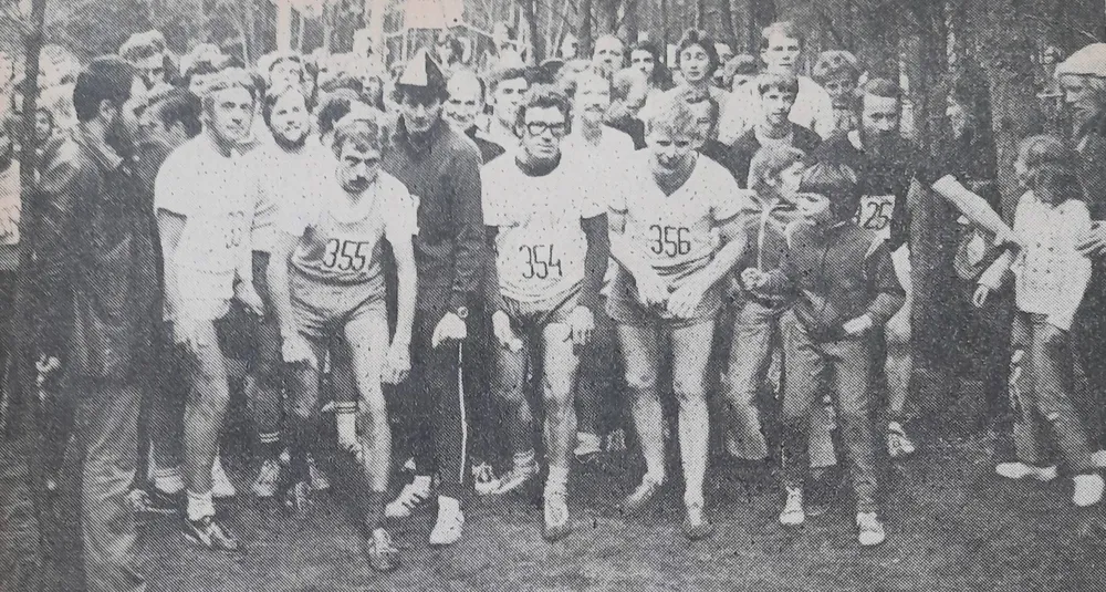 Een van de oprichters dook deze week in een oud plakboek en vond enkele zwart-wit foto’s van de eerste edities – waarschijnlijk van de derde DDC in 1975. Slechts een honderd-tal deelnemers trotseerden het koude weer, met Gerard Heeskens uit Best als winnaar bij de mannen en DAK-fenomeen Ria van Houten bij de dames. Ria is tegenwoordig nog steeds actief binnen de vereniging. Daarna wordt het lastig om uitslagen en krantenknipsels terug te vinden, maar het parcours bleef in de loop der jaren opvallend stabiel.