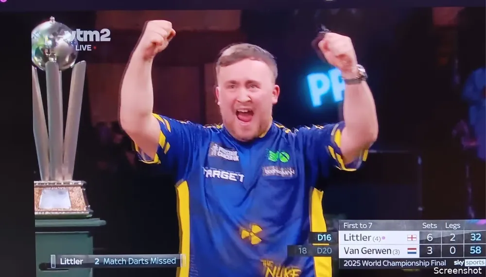 Michael van Gerwen is er niet in geslaagd voor de vierde keer de wereldtitel te winnen. De 35-jarige Vlijmenaar leed in de finale in Alexandra Palace in Londen een kansloze nederlaag tegen de 17-jarige Engelsman Luke Littler. Het werd 7-3. Na veertig minuten leidde Littler, die vorig jaar voor het eerst in de finale stond en toen verloor van zijn landgenoot Luke Humphries, al met 4-0.