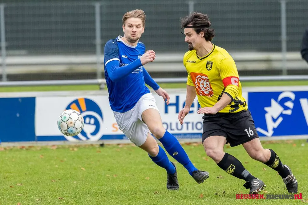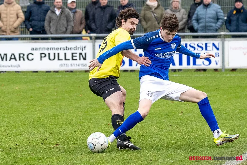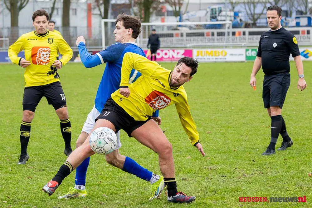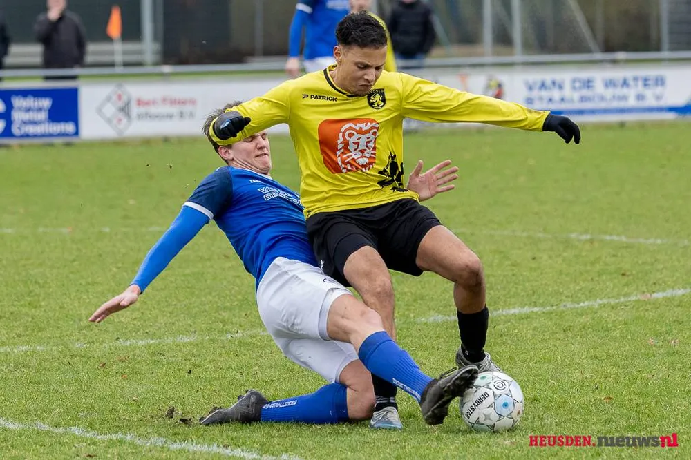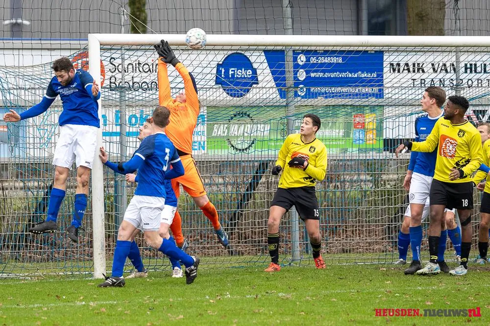 Een zeperd hing in de lucht, maar binnen negen minuten zag de wereld voor blauw en wit er heel anders uit. Door doelpunten van John van Dommelen en Lars van Baardwijk waren de bordjes verhangen. Daarmee was de koek wat de spanning betreft nog niet op. In de slotminuut scoorde Leones de gelijkmaker, maar de scheidsrechter keurde het doelpunt af vanwege aanvallen van de doelman. ,,Heel erg dubieus”, vond trainer Ronny Everaerts. ,,Het zat ons dus enorm mee.”