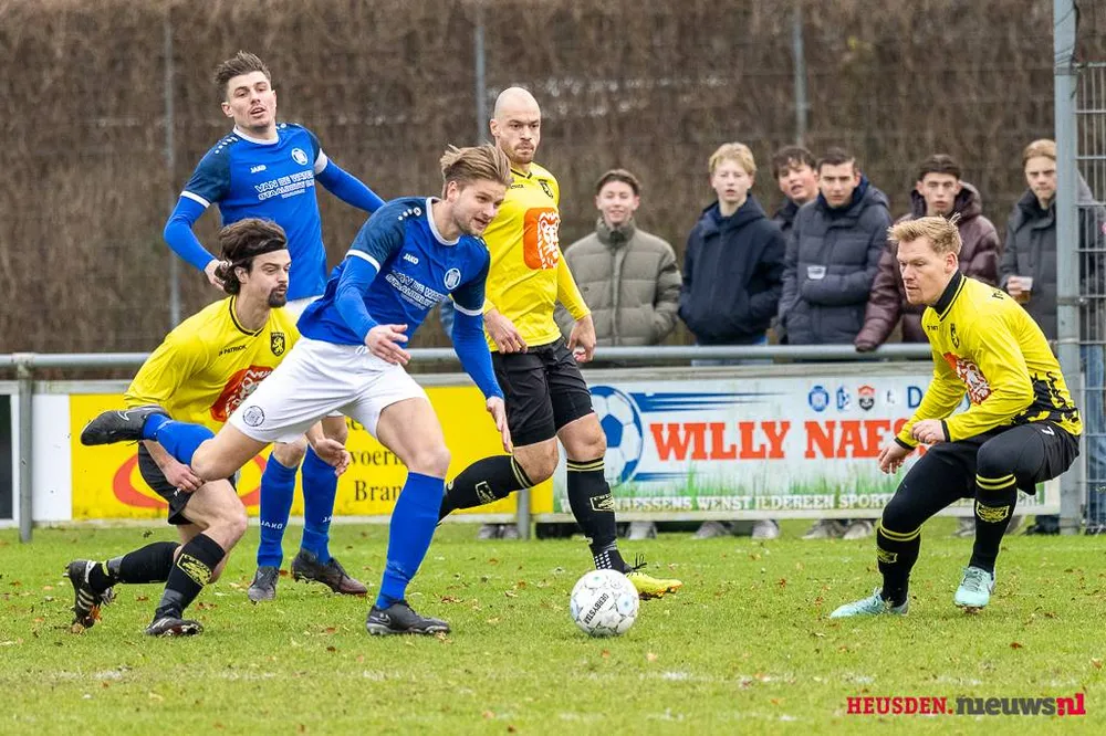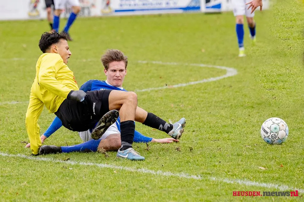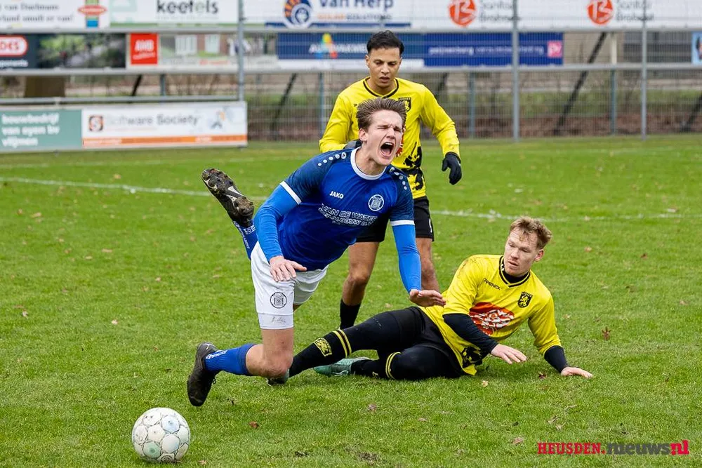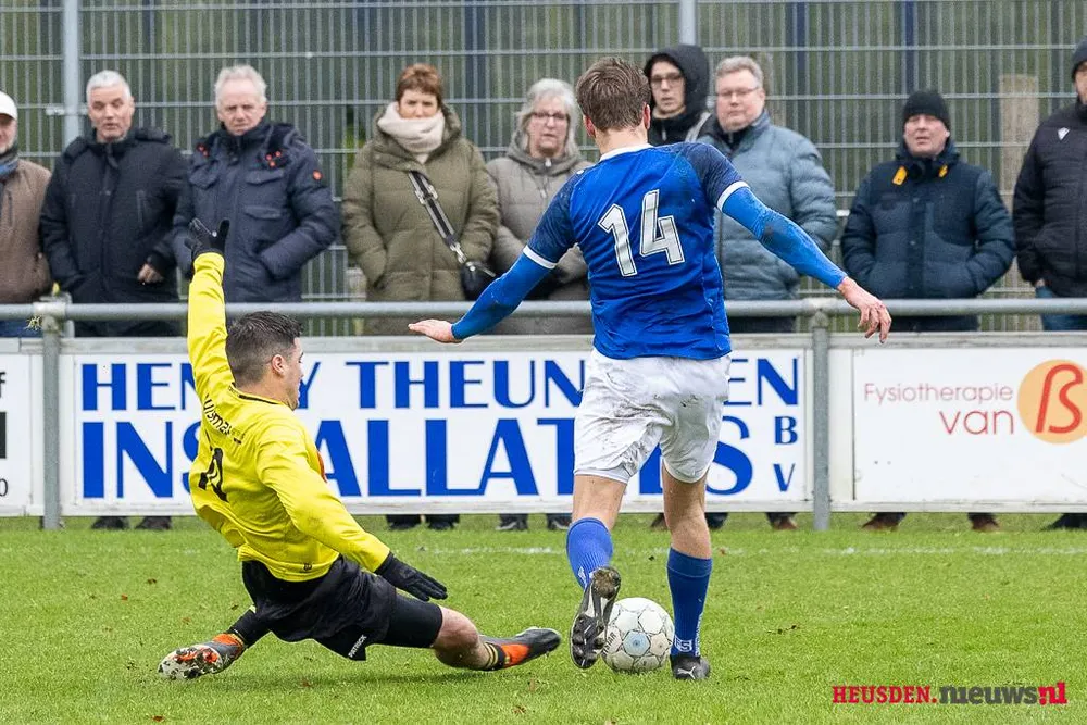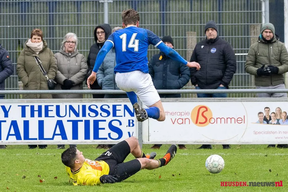 Een zeperd hing in de lucht, maar binnen negen minuten zag de wereld voor blauw en wit er heel anders uit. Door doelpunten van John van Dommelen en Lars van Baardwijk waren de bordjes verhangen. Daarmee was de koek wat de spanning betreft nog niet op. In de slotminuut scoorde Leones de gelijkmaker, maar de scheidsrechter keurde het doelpunt af vanwege aanvallen van de doelman. ,,Heel erg dubieus”, vond trainer Ronny Everaerts. ,,Het zat ons dus enorm mee.”